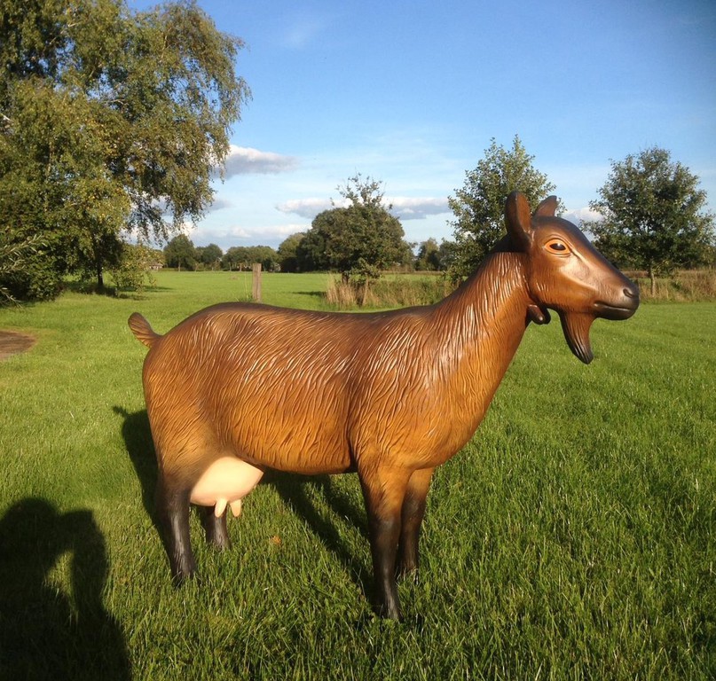 Miss Chèvre, grandeur nature et d’un réalisme bluffant, se décline en blanc ou marron pour s’intégrer avec charme et authenticité dans tous les décors.
